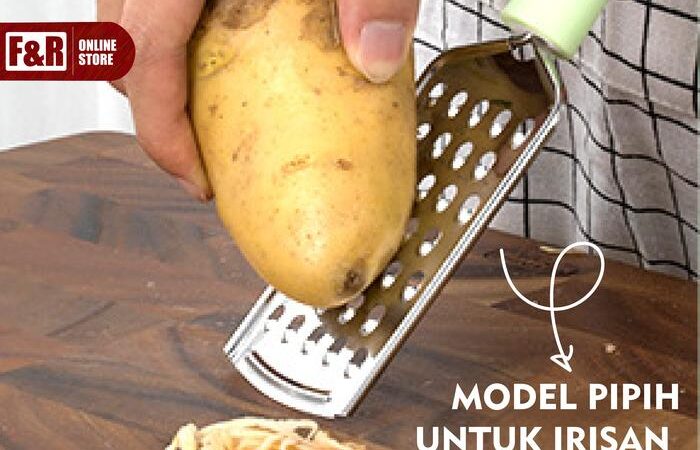 Ubah dapur Anda menjadi lebih efisien dengan Parutan Serbaguna Stainless Steel berkualitas tinggi. Dirancang untuk memarut berbagai bahan makanan dengan hasil yang konsisten dan halus, alat ini adalah pilihan sempurna untuk memasak dan menyajikan hidangan yang elegan.