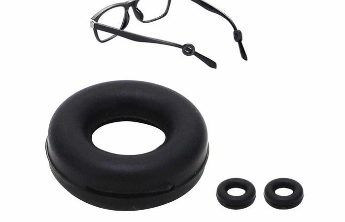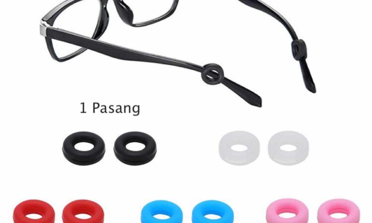 - Earhook Silicone: Pengait berbahan silikon yang dipasang pada ujung gagang kacamata (temple tip) untuk mengait di belakang telinga, berfungsi menahan kacamata agar tidak mudah jatuh.