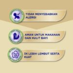 | Ekstra Lembut | 3x lebih lembut dibanding tisu biasa, tidak mengiritasi kulit bayi. |
