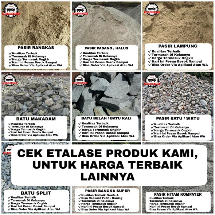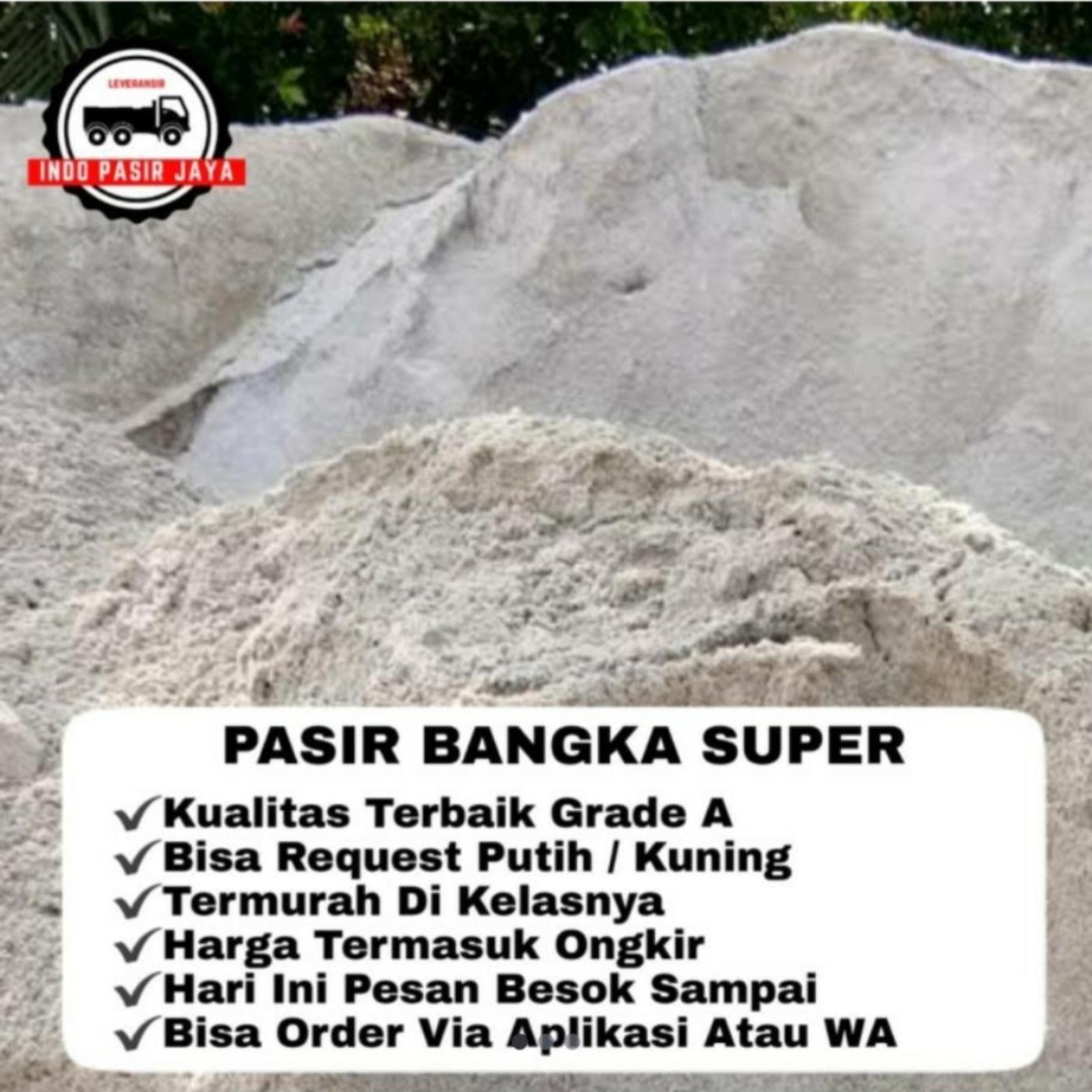 Dapatkan Pasir Bangka Super berkualitas tinggi dengan volume penuh 7-7,2 kubik. Kami menjamin keaslian pasir yang langsung berasal dari kapal tongkang Ancol, sehingga terhindar dari barang tiruan. Layanan kami termasuk harga termurah di Tokopedia, gratis ongkir untuk wilayah Jakarta dan Tangerang, serta gratis biaya bongkar muat.