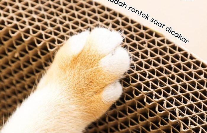 • Kertas Corrugated: Merupakan bahan sejenis karton bergelombang yang memiliki tekstur kasar yang sangat disukai kucing untuk menggaruk. Material ini dikenal kuat, awet, dan mampu menahan cakaran tanpa mudah rusak.