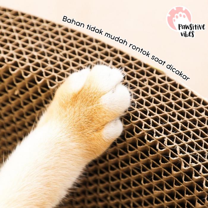 Bahan Kertas CorrugatedMaterial tebal dan bertekstur, sangat disukai kucing untuk menggaruk dan sangat tahan lama.
