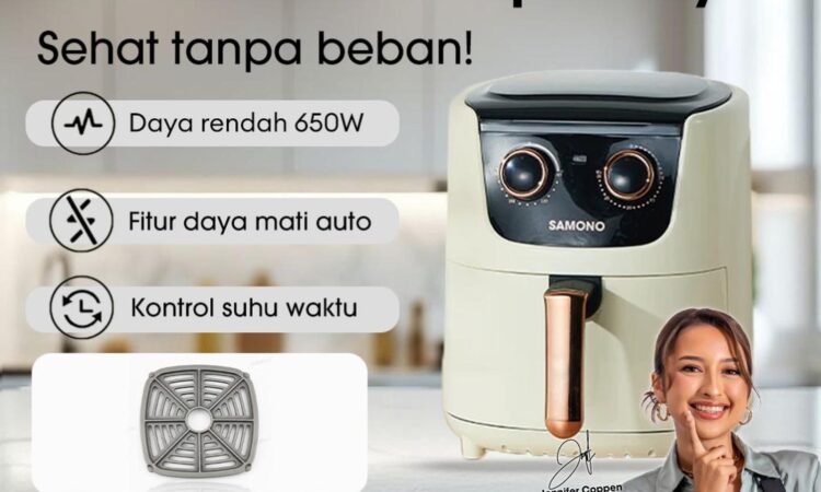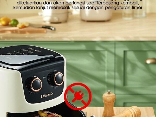 Raih gaya hidup sehat dengan mudah! Samono Air Fryer memungkinkan Anda menikmati makanan gorengan favorit yang lebih rendah kalori karena menggunakan teknologi canggih untuk memasak dengan sedikit hingga tanpa minyak. Dengan kapasitas 4 liter, alat ini cocok untuk memenuhi kebutuhan keluarga kecil.