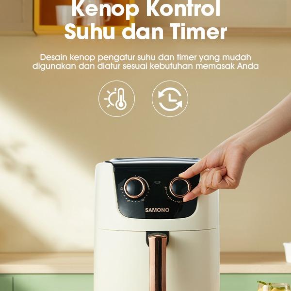 Raih gaya hidup sehat dengan mudah! Samono Air Fryer memungkinkan Anda menikmati makanan gorengan favorit yang lebih rendah kalori karena menggunakan teknologi canggih untuk memasak dengan sedikit hingga tanpa minyak. Dengan kapasitas 4 liter, alat ini cocok untuk memenuhi kebutuhan keluarga kecil.