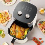 - Air Fryer: Alat memasak yang mensirkulasikan udara panas di sekitar makanan untuk menghasilkan tekstur garing seperti digoreng, tetapi dengan minyak yang sangat sedikit atau bahkan tanpa minyak.
