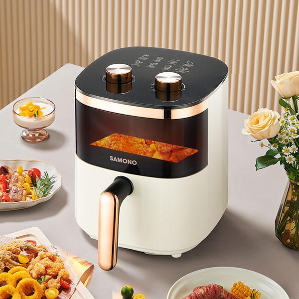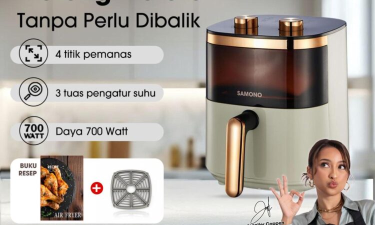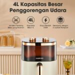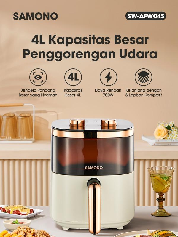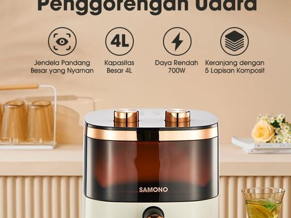Hidup sehat dimulai dari dapur! Dapatkan Samono Air Fryer dengan tampilan aesthetic dan kaca transparan untuk memudahkan Anda memantau proses memasak. Dengan kapasitas 4 liter, alat ini cocok untuk memenuhi kebutuhan memasak seluruh keluarga.
