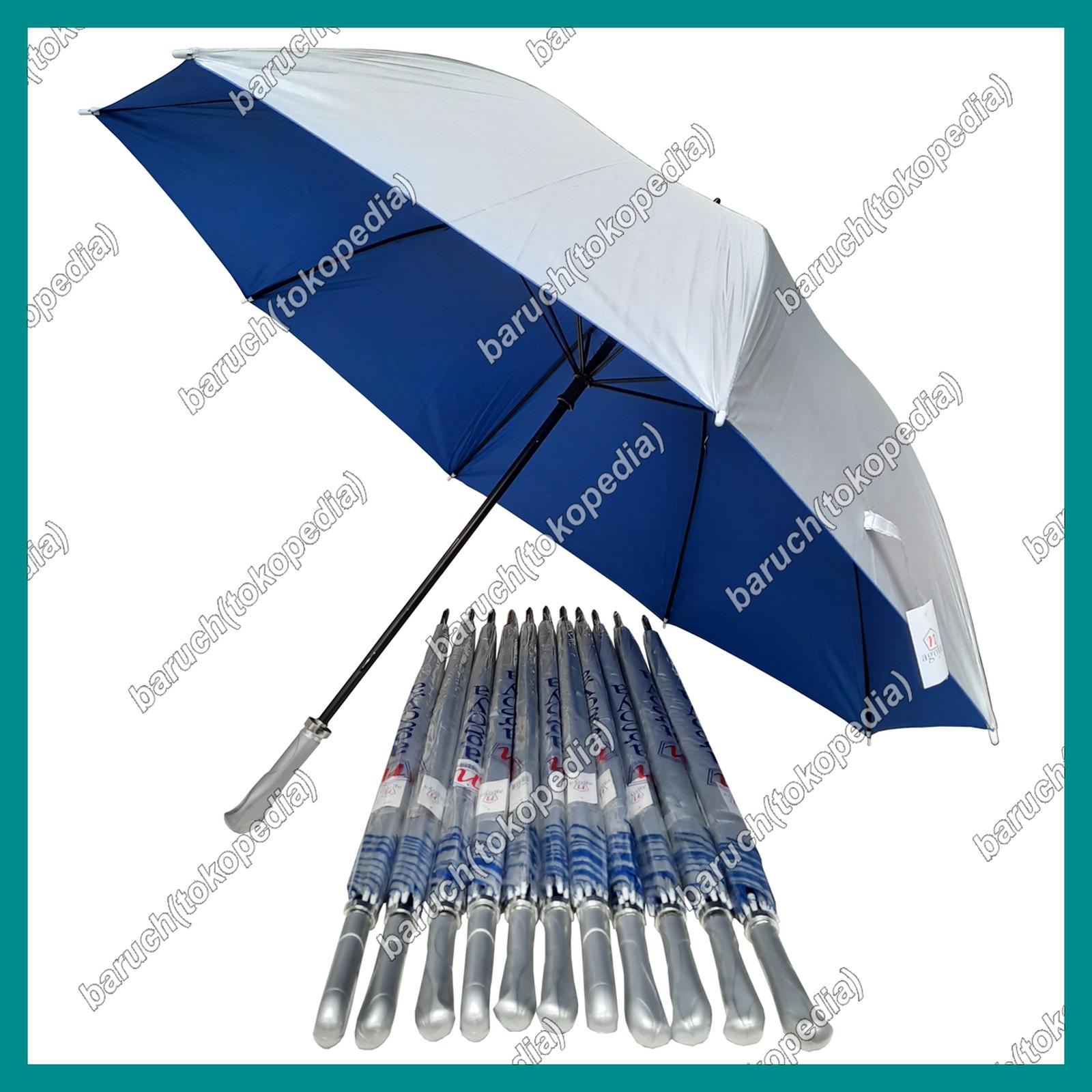 Tampil stylish dan terlindungi maksimal dari terik matahari dan hujan dengan Payung Golf Jumbo berwarna silver ini. Dengan diameter sangat besar mencapai 145 cm, payung ini mampu melindungi tubuh Anda sepenuhnya, cocok untuk kegiatan golf, hiking, pasar, atau sekadar menunggu angkutan. Desainnya yang elegan dengan sisi luar silver metalik dan bagian dalam berwarna biru polos menambah kesan modern dan mewah.
