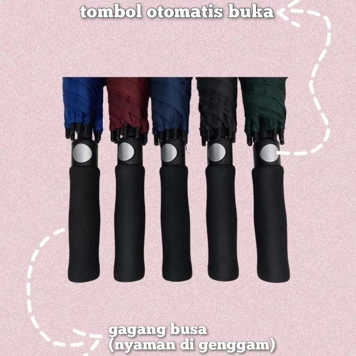 - Buka Otomatis (One-Touch): Fitur yang memungkinkan payung terbuka dengan menekan sebuah tombol, sehingga sangat praktis dan mudah digunakan hanya dengan satu tangan.