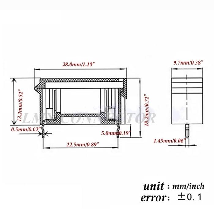 | Kompatibel | Sekring tabung (fuse) 5x20mm, tipe kaca dan keramik |