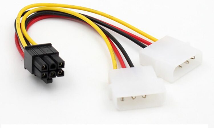 - PCI-Express 6-pin (PCIe): Sebuah konektor daya khusus yang dirancang untuk memberikan daya tambahan langsung dari PSU ke kartu grafis (VGA) PCI-Express, yang biasanya membutuhkan daya lebih besar daripada yang dapat disediakan oleh slot motherboard saja.
