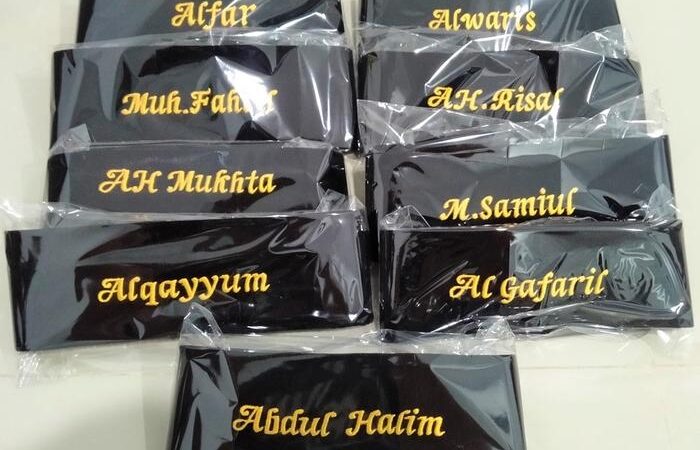 - Bordir Nama: Penyulaman nama menggunakan benang khusus (hijau/kuning) untuk personalisasi.
