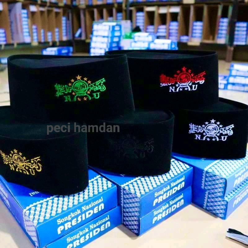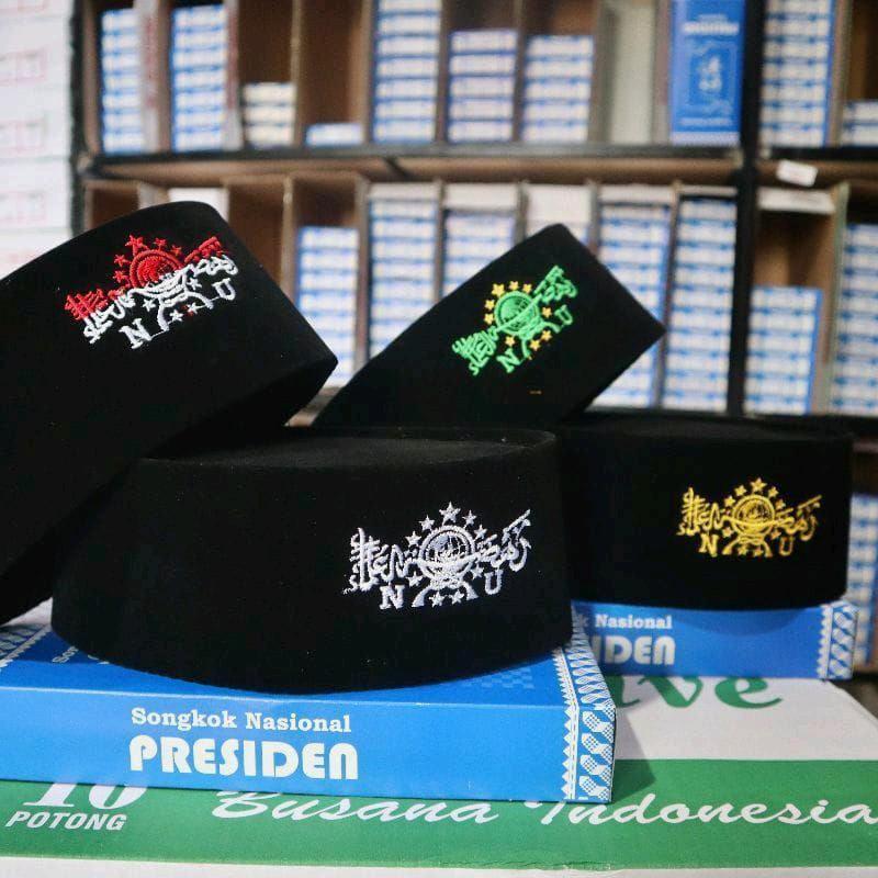- Songkok NU: Peci tradisional yang identik dengan warna dan logo Nahdlatul Ulama (NU), organisasi Islam terbesar di Indonesia.