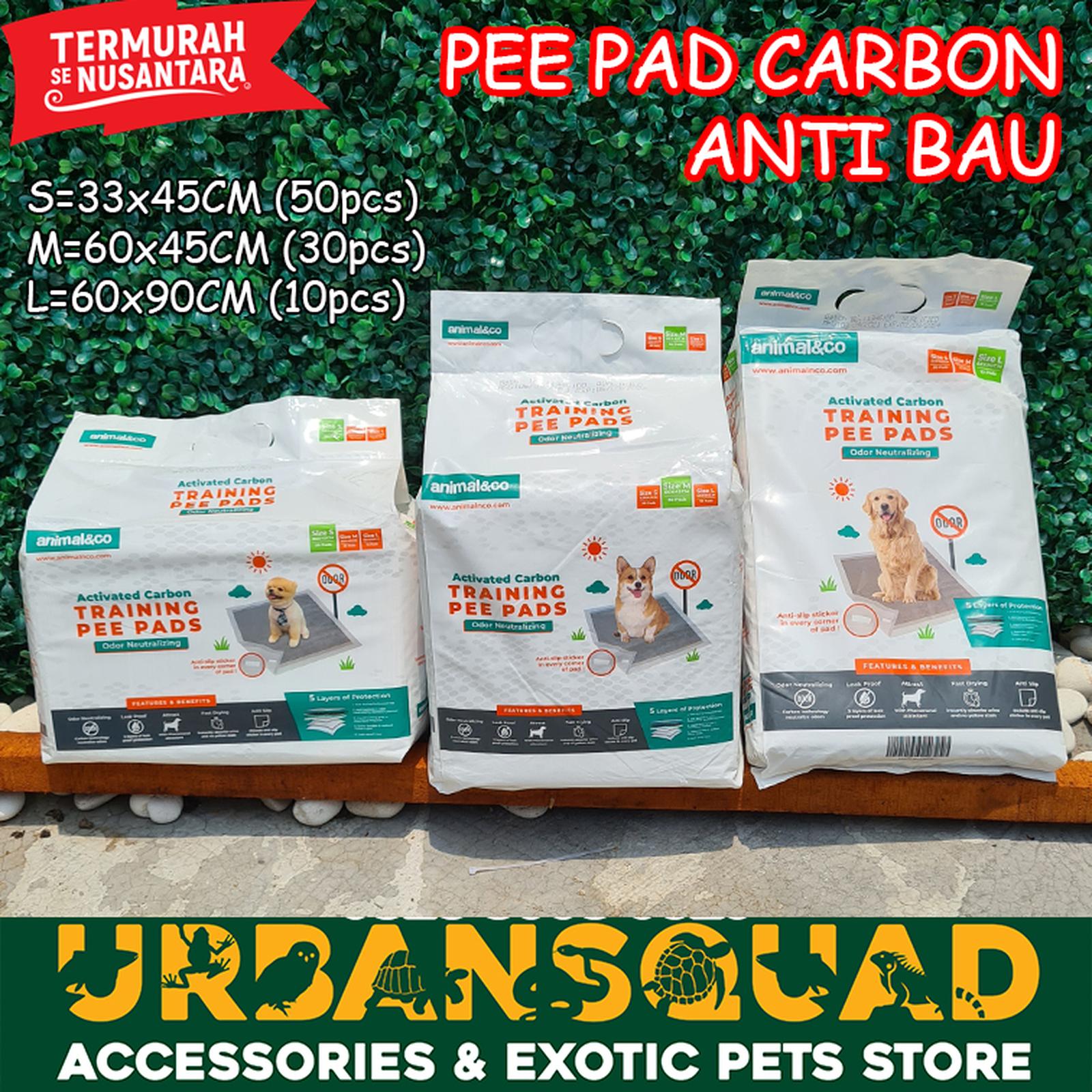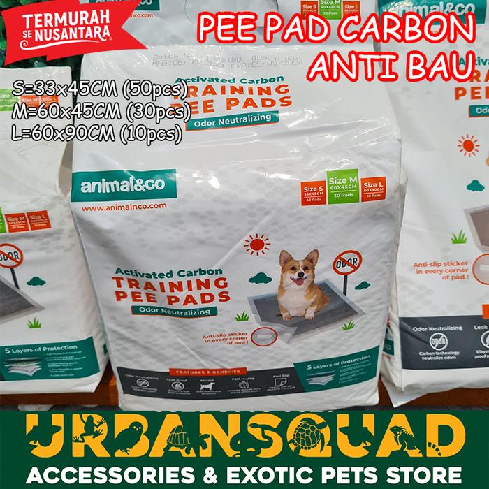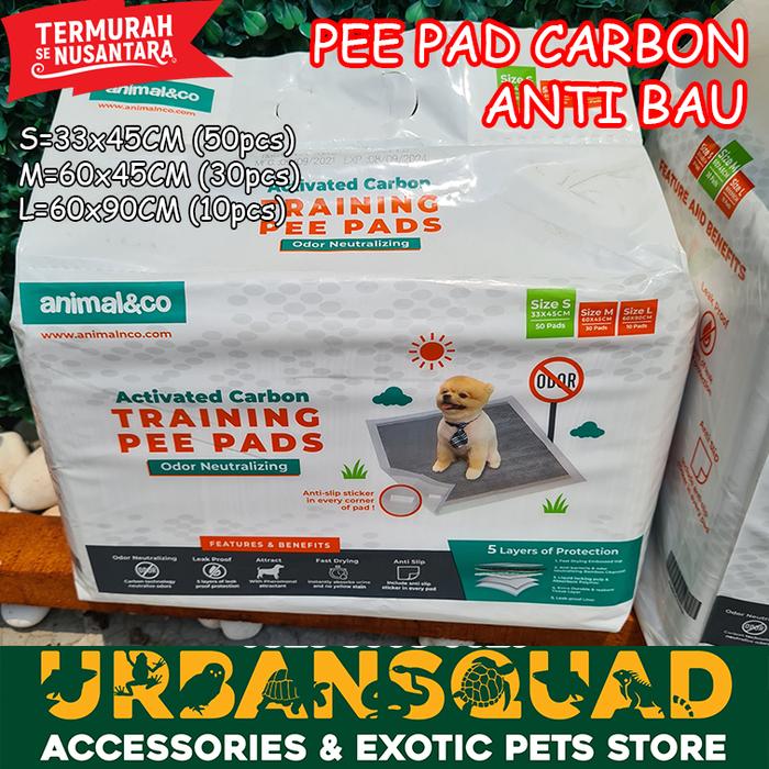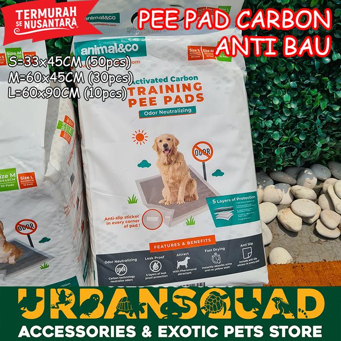 Animalnco Training Pee Pad dengan teknologi karbon aktif yang menetralisir bau tak sedap secara maksimal. Dilengkapi 5 lapisan super untuk penyerapan cairan super cepat, antibakteri, permukaan tetap kering, dan daya tahan ekstra kuat. Perekat kuat di setiap sudut menjaga pad tetap stabil di tempatnya, tidak mudah bergeser.