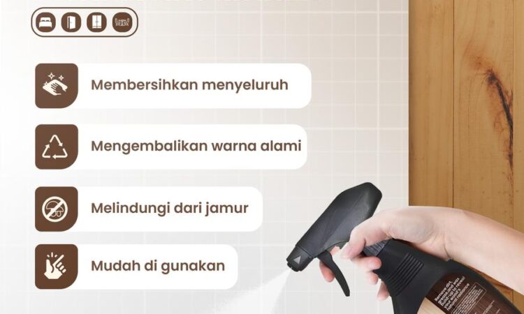 - Semprotkan pada permukaan kayu dari jarak 10 cm.