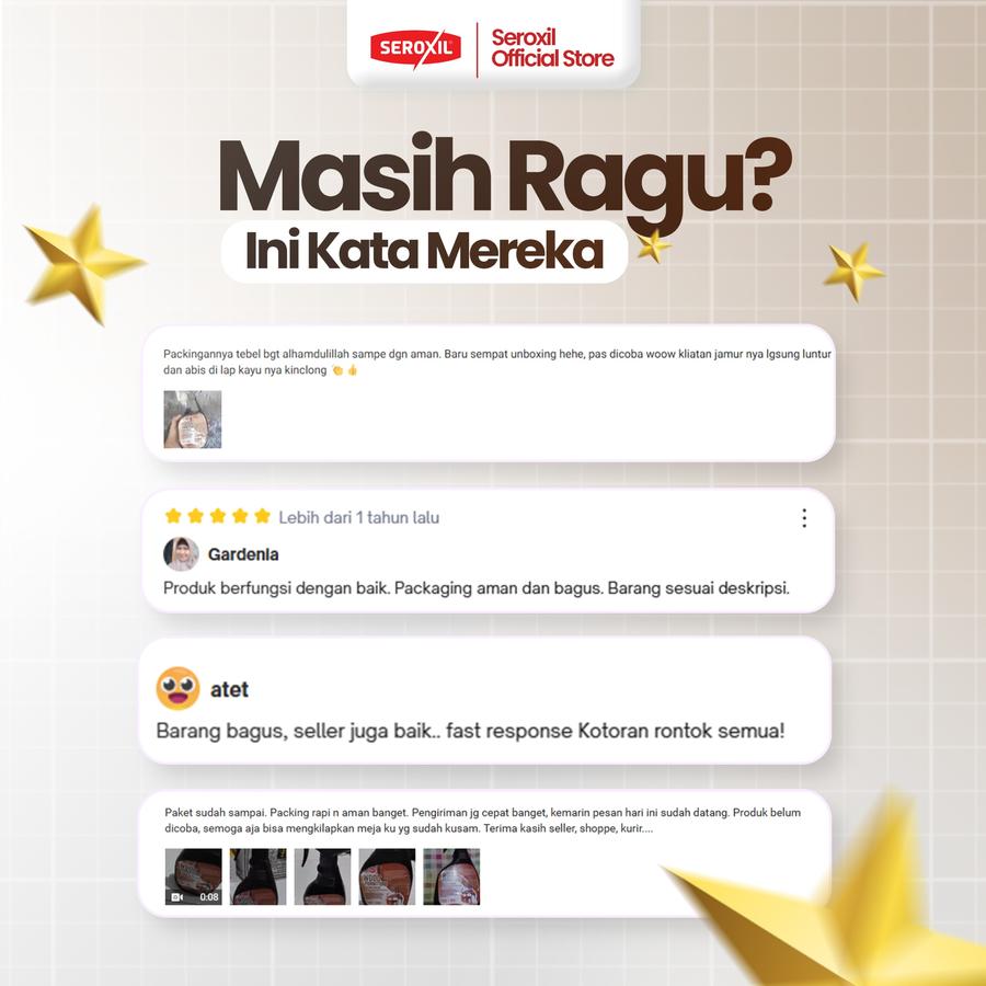 Seroxil Wood Clean and Polish adalah solusi lengkap untuk merawat dan melindungi furnitur kayu Anda. Produk ini diformulasikan khusus untuk membersihkan debu, kotoran, noda membandel, serta menghilangkan jamur pada kayu gerjian dan mebel. Dengan kandungan antibakteri dan antijamur, Seroxil menjaga keindahan alami kayu sekaligus memberikan perlindungan tahan lama.