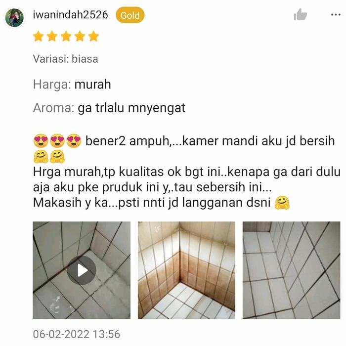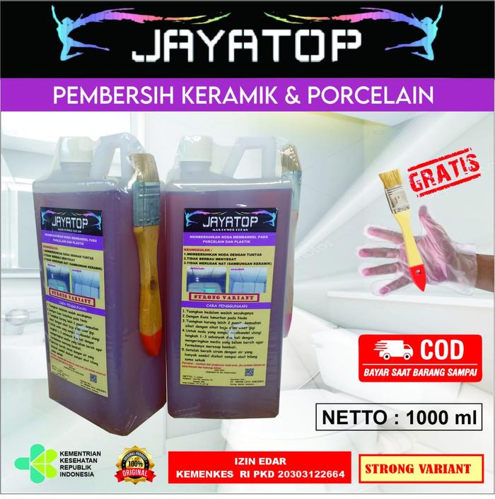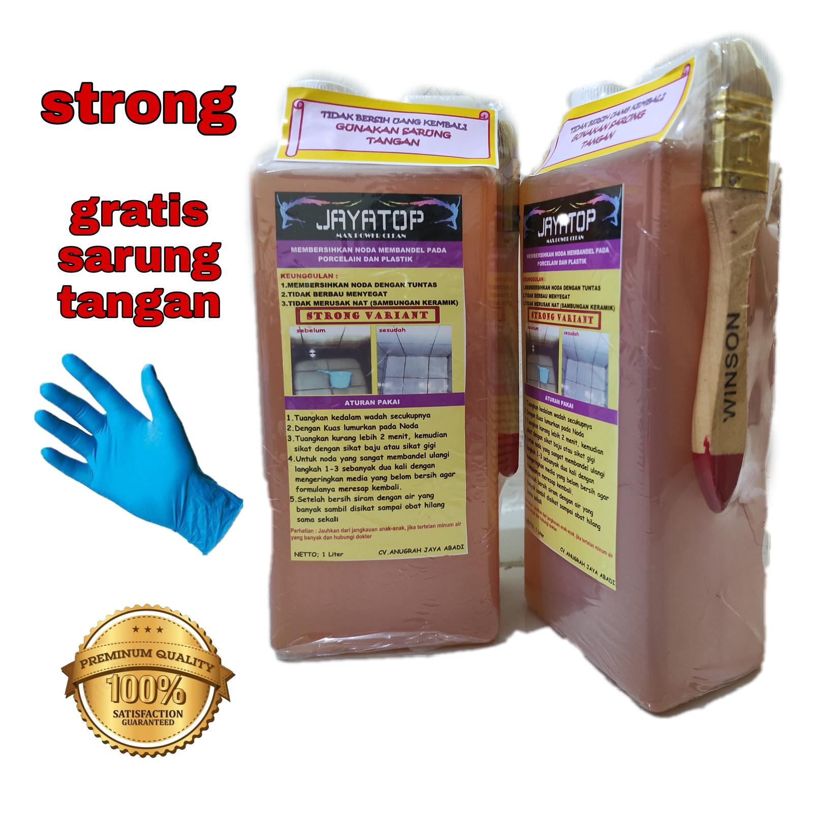 | Formula Strong 10x | Menghancurkan kerak bandel pada porselen, keramik, dan permukaan ubin dengan cepat dan efektif. | 1 Liter / Botol | Gratis 1 Sarung Tangan & 1 Kuas Aplikator |