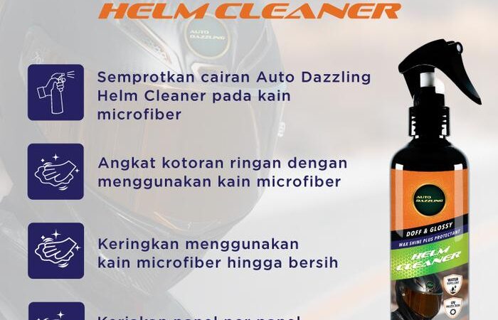 AutoDazzling Helm Cleaner adalah solusi praktis untuk perawatan helm dan motor Anda. Formulasi Wax Shine Clean plus Protectant-nya tidak hanya membersihkan kotoran dengan efektif tetapi juga langsung memberikan lapisan pelindung (protectant) yang membuat helm mengilap seperti efek daun talas. Aman digunakan pada semua jenis permukaan helm, termasuk visor dan permukaan doff maupun glossy.