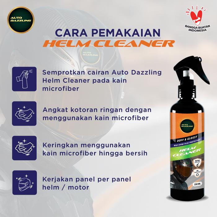 AutoDazzling Helm Cleaner adalah solusi praktis untuk perawatan helm dan motor Anda. Formulasi Wax Shine Clean plus Protectant-nya tidak hanya membersihkan kotoran dengan efektif tetapi juga langsung memberikan lapisan pelindung (protectant) yang membuat helm mengilap seperti efek daun talas. Aman digunakan pada semua jenis permukaan helm, termasuk visor dan permukaan doff maupun glossy.
