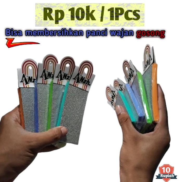 Multi-fungsiMembersihkan wajan gosong, kerak keramik kamar mandi, wastafel, kloset, dan sekaligus mengasah pisau & gunting.
