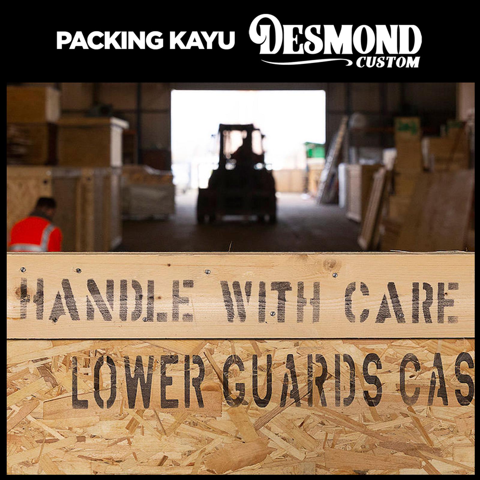 Tingkatkan keamanan pengiriman gitar Anda dengan layanan Packing Kayu eksklusif dari Desmond Music. Kami menggunakan material kayu berkualitas tinggi yang dirancang khusus untuk melindungi gitar elektrik, akustik, maupun bass selama proses pengiriman. Setiap unit dibungkus dengan bubble wrap tebal sebelum dimasukkan ke dalam kemasan kayu yang kokoh.
