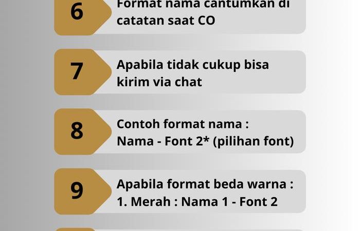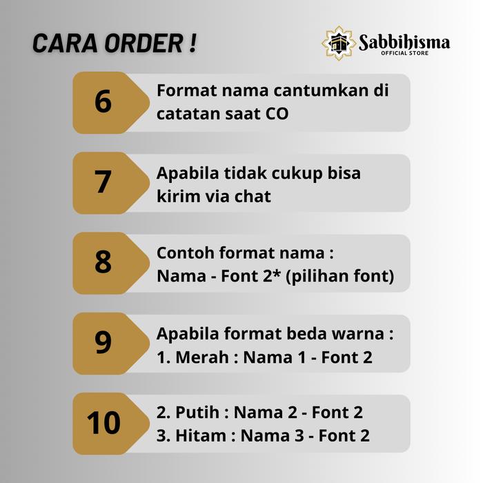 - Format Nama WAJIB ditulis pada pesan untuk penjual saat checkout (CO). Contoh: