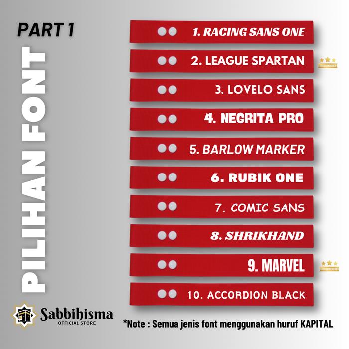 | Kustomisasi Nama | Dapat disablon dengan nama sesuai keinginan Anda. Pilih font dari opsi yang tersedia. |