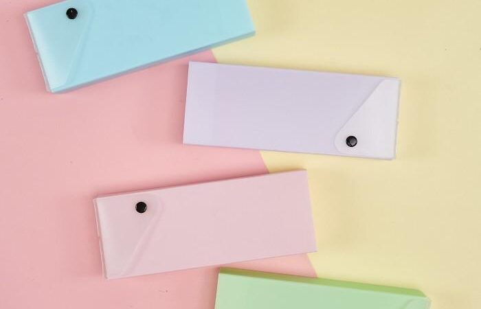 • Kancing Tekan (Snap Button): Mekanisme penutup yang terdiri dari dua bagian logam atau plastik yang saling mengunci ketika ditekan, membuat kotak pensil tertutup dengan aman dan mudah untuk dibuka kembali.