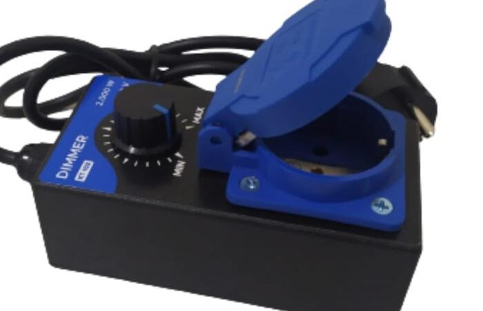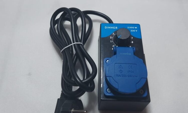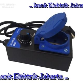 Dimmer AC: Alat yang berfungsi untuk mengatur tingkat terang lampu atau kecepatan motor dengan cara mengurangi daya yang mengalir ke beban. Dimmer AC yang ditujukan untuk motor biasanya bekerja dengan memotong sebagian gelombang sinus tegangan AC (phase-angle control) untuk menurunkan tegangan efektif yang sampai ke motor, sehingga putaran motor dapat dikurangi. Teknik ini berbeda dengan PWM (Pulse Width Modulation) yang umum digunakan untuk motor DC. journal.eng.unila.ac.id