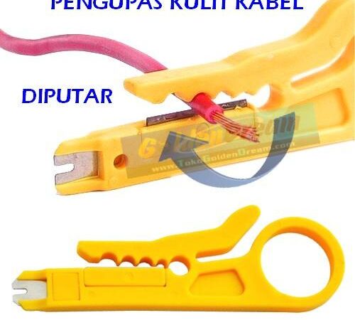 Alat pengupas kulit kabel inovatif dengan metode rotary (putar) untuk mengupas selongsong jacket kabel luar dengan sangat mudah dan presisi. Cukup masukkan kabel, putar alat satu kali, dan kulit kabel terkelupas sempurna tanpa merusak konduktor di dalamnya. Model terbaru ini hadir dengan material plastik yang lebih solid dan kokoh serta pisau potong dari baja yang jauh lebih tajam dan kuat, menjamin keawetan dan performa optimal.