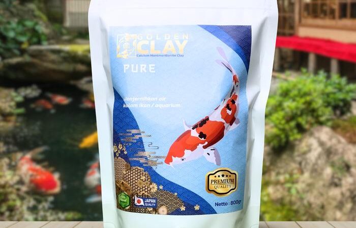 Tingkatkan kesehatan dan keindahan ikan koi Anda dengan Golden Clay, solusi alami berbasis Calcium Montmorillonite murni. Produk ini dirancang khusus untuk menciptakan lingkungan perairan yang optimal, mirip dengan habitat asli koi, sehingga mendukung kehidupan ikan yang lebih sehat dan cerah.