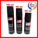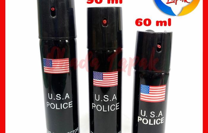 | Ukuran & Kapasitas | 90ml (versi gratis sarung) atau 110ml (original police lachrymatory ejector) |