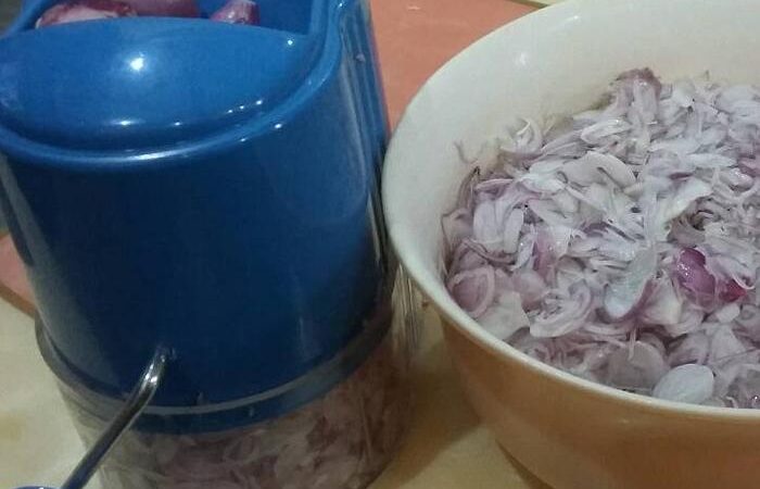 Cara penggunaannya sangat simpel: masukkan bawang merah atau putih yang sudah dikupas ke dalam lubang, putar handle-nya, dan dalam hitungan detik, bawang akan teriris tipis dan rapi langsung tertampung di wadah penampung. Tidak ada lagi cipratan atau bau bawang yang menempel kuat di tangan.