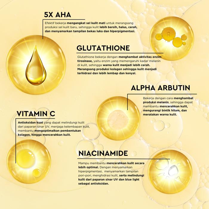 | 5 Jenis AHA + Alpha Arbutin | Memudarkan noda hitam & bekas luka |