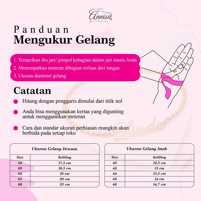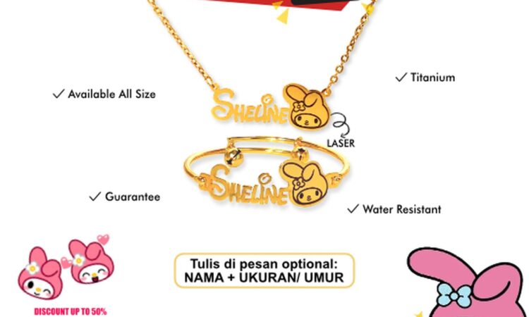 | Paketan | 1 Set lengkap: Kalung nama + Gelang + Cincin. |