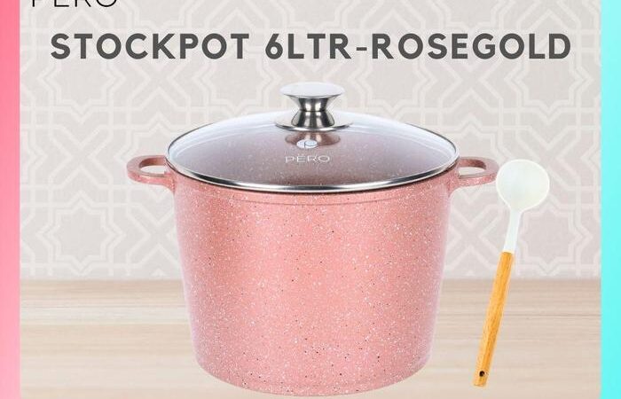 Tingkatkan pengalaman memasak Anda dengan Pero Stock Pot, panci granite anti lengket berkapasitas besar yang didesain untuk memudahkan segala kebutuhan masak harian Anda. Terbuat dari material aluminium berkualitas tinggi dengan lapisan Bio-Granite 6 layers, panci ini memberikan performa anti lengket superior, bebas PFOA, dan aman untuk kesehatan. Permukaannya yang halus memastikan makanan tidak mudah hangus serta memudahkan proses pembersihan.