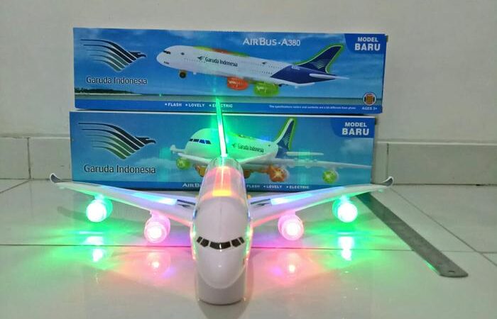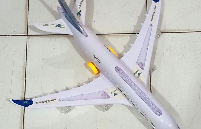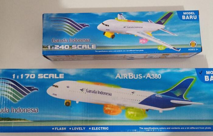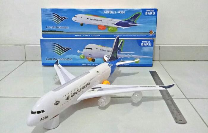 Rasakan sensasi penerbangan dengan replika detail Pesawat Airbus A380 Garuda Indonesia. Mainan berkualitas tinggi ini hadir dalam skala 1:170 dengan panjang 43 cm, bentang sayap 44 cm, dan tinggi ekor 14 cm, menjadikannya koleksi yang mengesankan.