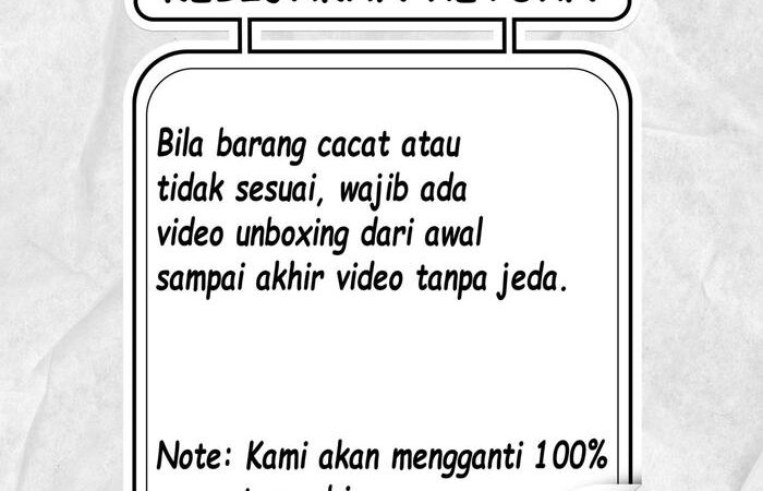 - Untuk klaim garansi, wajib unboxing video tanpa jeda dari awal hingga akhir jika barang cacat/tidak sesuai.