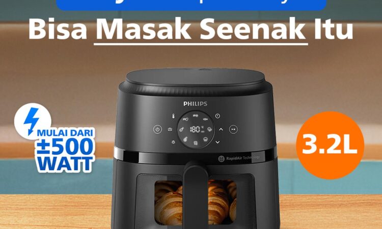 Hanya Philips Airfryer yang bisa menghadirkan cita rasa seenak itu! Kini hadir dengan desain compact 3.2 L dan jendela transparan, sehingga Anda bisa memantau proses memasak tanpa harus terus membuka tutupnya. Dilengkapi dengan teknologi Rapid Air yang memastikan panas tersebar merata, membuat makanan matang sempurna—krispi di luar, juicy di dalam—dengan penggunaan daya yang rendah, mulai dari 500W.