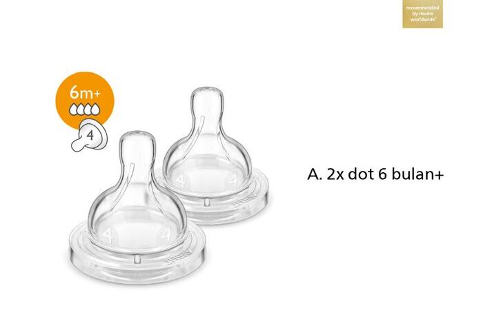 Dot Philips Avent Classic+ Fast Flow didesain khusus untuk bayi usia 6 bulan ke atas yang membutuhkan aliran susu lebih lancar. Dengan empat lubang aliran normal, dot ini memudahkan bayi menyusu tanpa tersendat. Teknologi Anti-Colic yang terintegrasi memastikan udara mengalir ke dalam botol, bukan ke perut bayi, sehingga mengurangi risiko kolik dan rasa tidak nyaman.