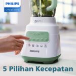 - ProBlend Crush Technology: Teknologi unggulan Philips pada pisau dan motor yang dirancang khusus untuk menghancurkan es batu dan bahan-bahan keras dengan lebih efisien dan cepat tanpa mudah rusak.