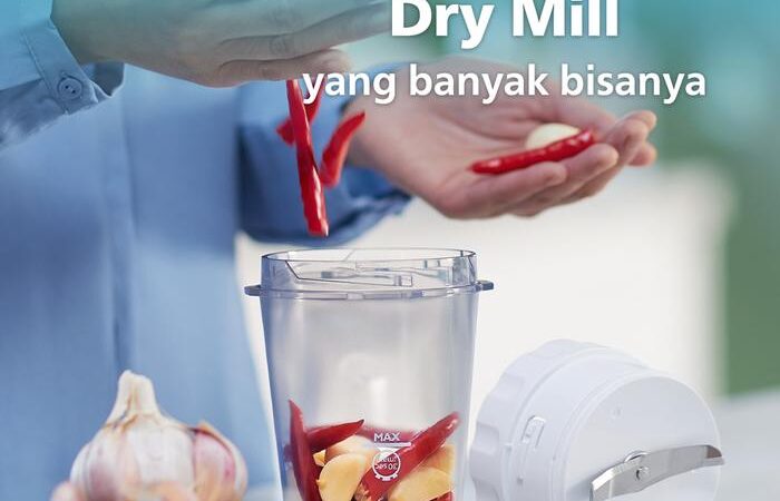 Dilengkapi dengan 5 pilihan kecepatan plus fitur Pulse dan QuickClean, Anda memiliki kontrol penuh atas berbagai tekstur makanan, mulai dari smoothie lembut hingga sambal kasar. Keunggulan lainnya adalah aksesori Dry Mill yang multifungsi untuk menggiling bumbu kering dan biji-bijian menjadi tepung atau powder yang halus.