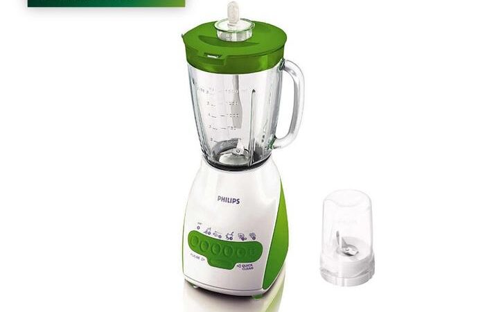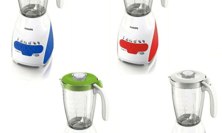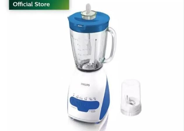 • Model HR2115/00 (Abu-abu), HR2115/30 (Biru), HR2115/40 (Hijau), HR2115/80 (Merah): Dilengkapi 1 Gelas Besar 2L dan 1 Mill (Gelas Kecil).