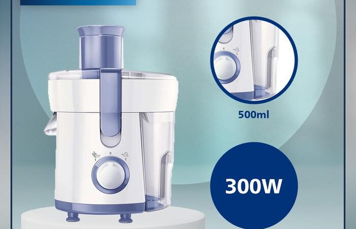 | Daya & Kecepatan | Motor 300W dengan 2 kecepatan: optimal untuk buah keras (apel, wortel) dan lunak (jeruk, anggur). |