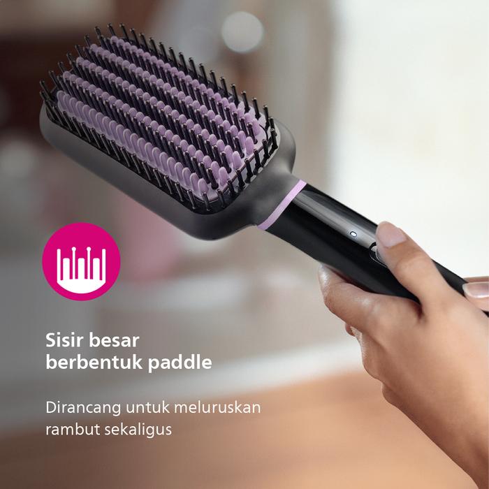 Wujudkan rambut lurus, halus, dan berkilau alami hanya dalam waktu 5 menit. Teknologi ThermoProtect yang cerdas menjaga suhu tetap konsisten untuk melindungi rambut dari panas berlebih, sementara desain bulu sisirnya yang unik bekerja merapikan dan meluruskan tanpa menyakiti kulit kepala.