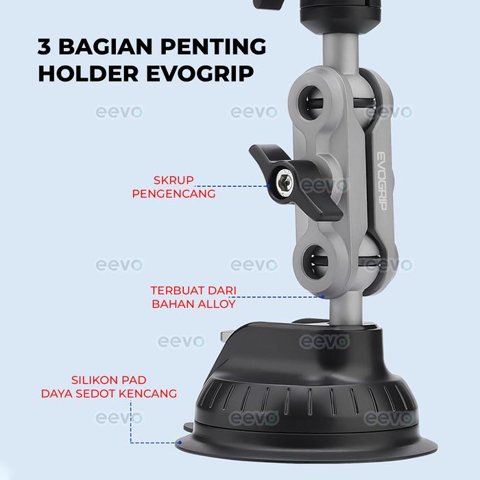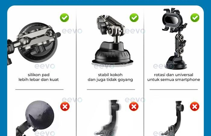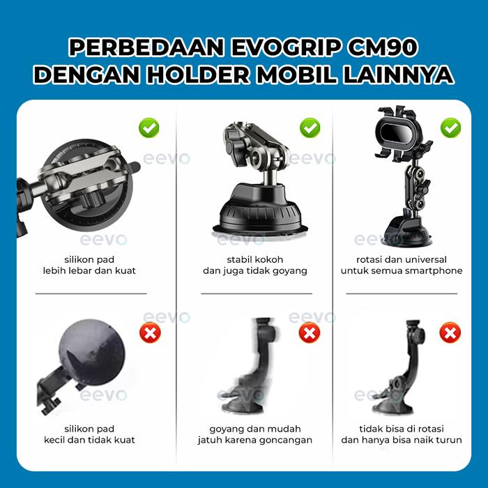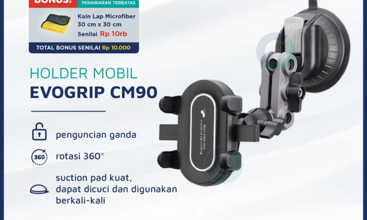 | Sucker Silikon Generasi Terbaru (Evogrip Cm90) | Melekat sangat kuat di kaca mobil maupun permukaan datar (meja kayu, plastik, kaca) tanpa meninggalkan bekas. |