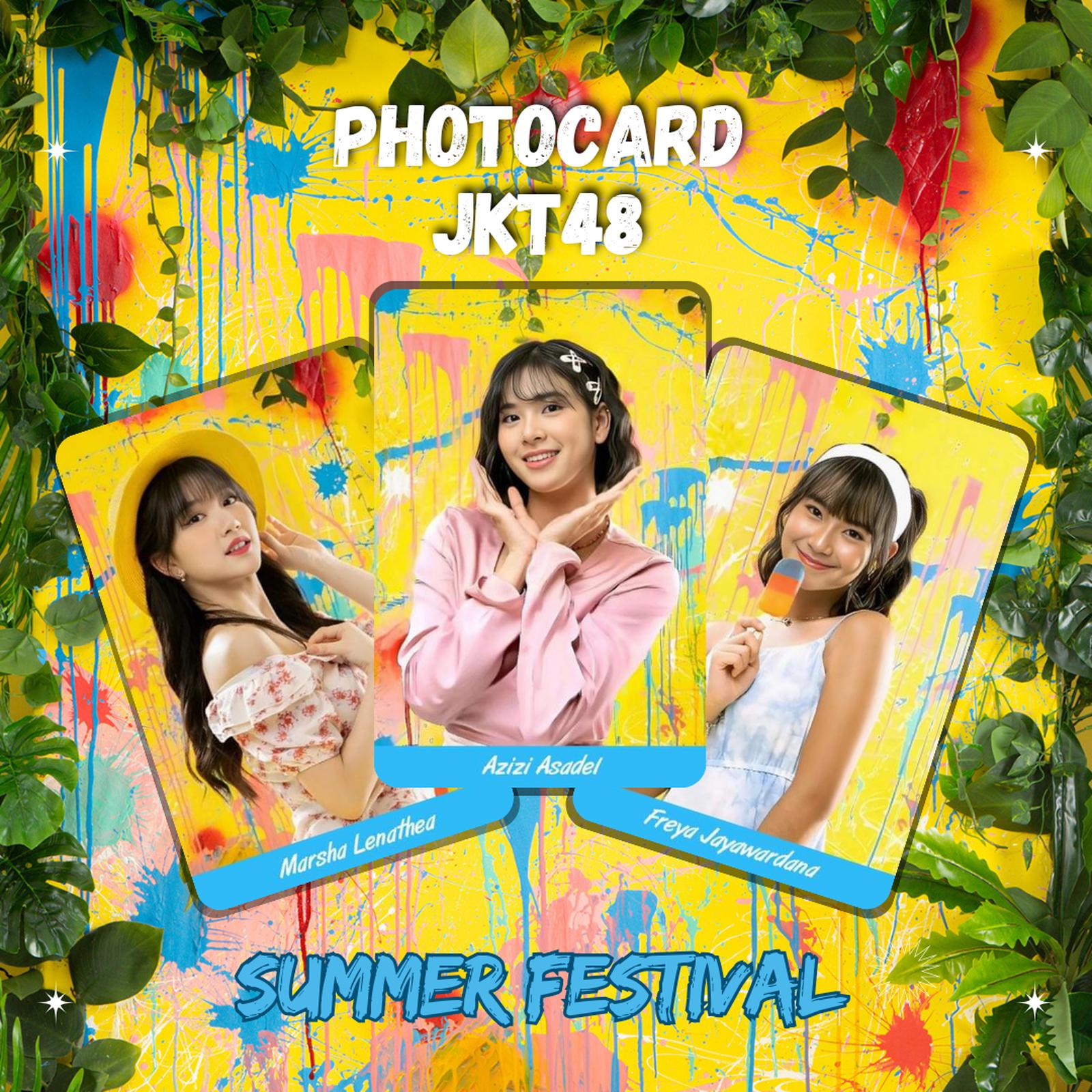 Dapatkan koleksi photocard JKT48 New Era Summer Festival dengan kualitas terbaik. Setiap photocard dicetak menggunakan Art Paper 310 gsm dan dilaminasi glossy pada kedua sisinya, memberikan hasil yang tajam dan tahan lama. Ukurannya yang pas, 5.5×8.5 cm, sempurna untuk koleksi atau dekorasi.