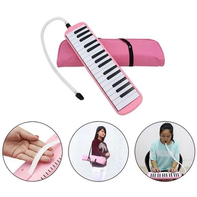 - Pianika: Alat musik tiup kecil yang memiliki bilah keyboard seperti piano. Suara dihasilkan dengan meniup melalui selang dan menekan tuts. Juga dikenal sebagai melodika.