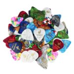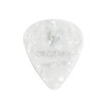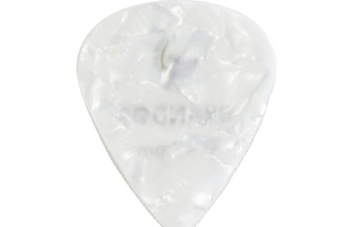 Celluloid: Sejenis plastik yang terbuat dari selulosa nitrat. Bahan ini sangat populer untuk pembuatan pick gitar karena karakteristiknya yang unik, menghasilkan suara hangat dan natural dengan attack yang lembut saat mengenai senar. Celluloid juga memberikan feel yang nyaman di jari karena sedikit fleksibel dan memiliki grip alami.