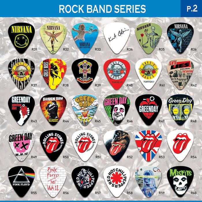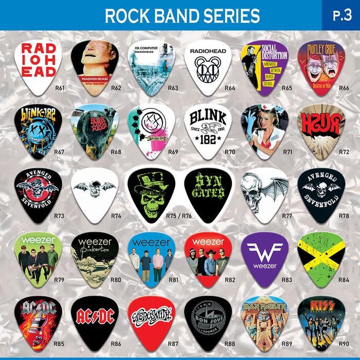 Temukan pick gitar dengan desain eksklusif dan performa terbaik untuk mendukung penampilan rock Anda. Setiap pick dicetak tajam pada kedua sisi dengan teknik print anti air dan tahan gores, menghasilkan gambar yang detail dan awet. Tekstur permukaannya dof (non-glossy) sehingga memberikan grip maksimal, tidak licin meski terkena keringat saat manggung atau latihan.