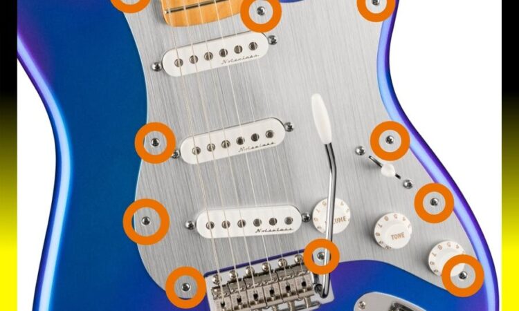 - Cavity Cover Screw: Sekrup khusus untuk menutup bagian belakang rongga gitar tempat komponen elektronik disimpan.